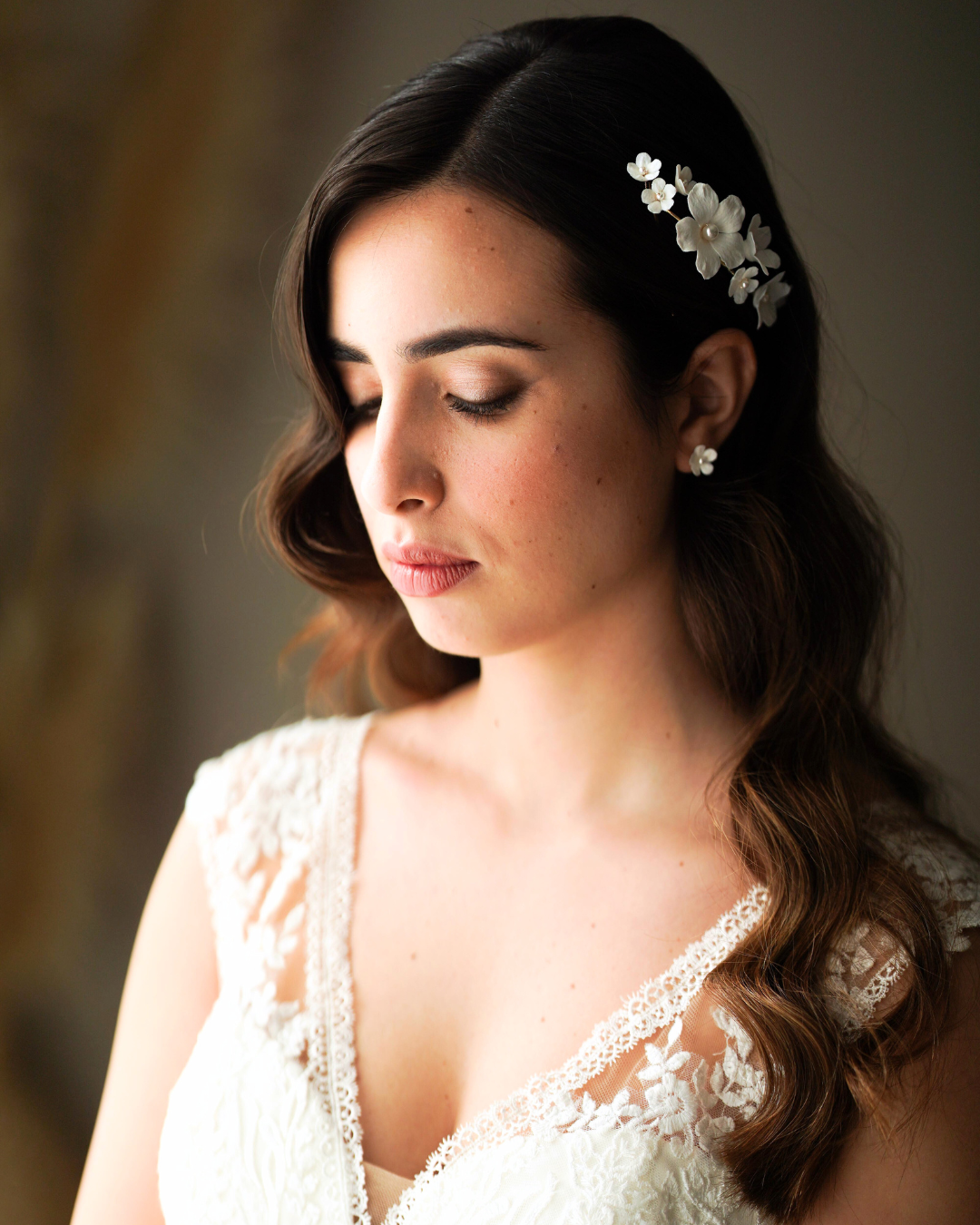 Finissimi fiori in argilla modellati a mano, perle giapponesi e cristalli super brillanti andranno a completare e rendere unico il tuo look sposa.