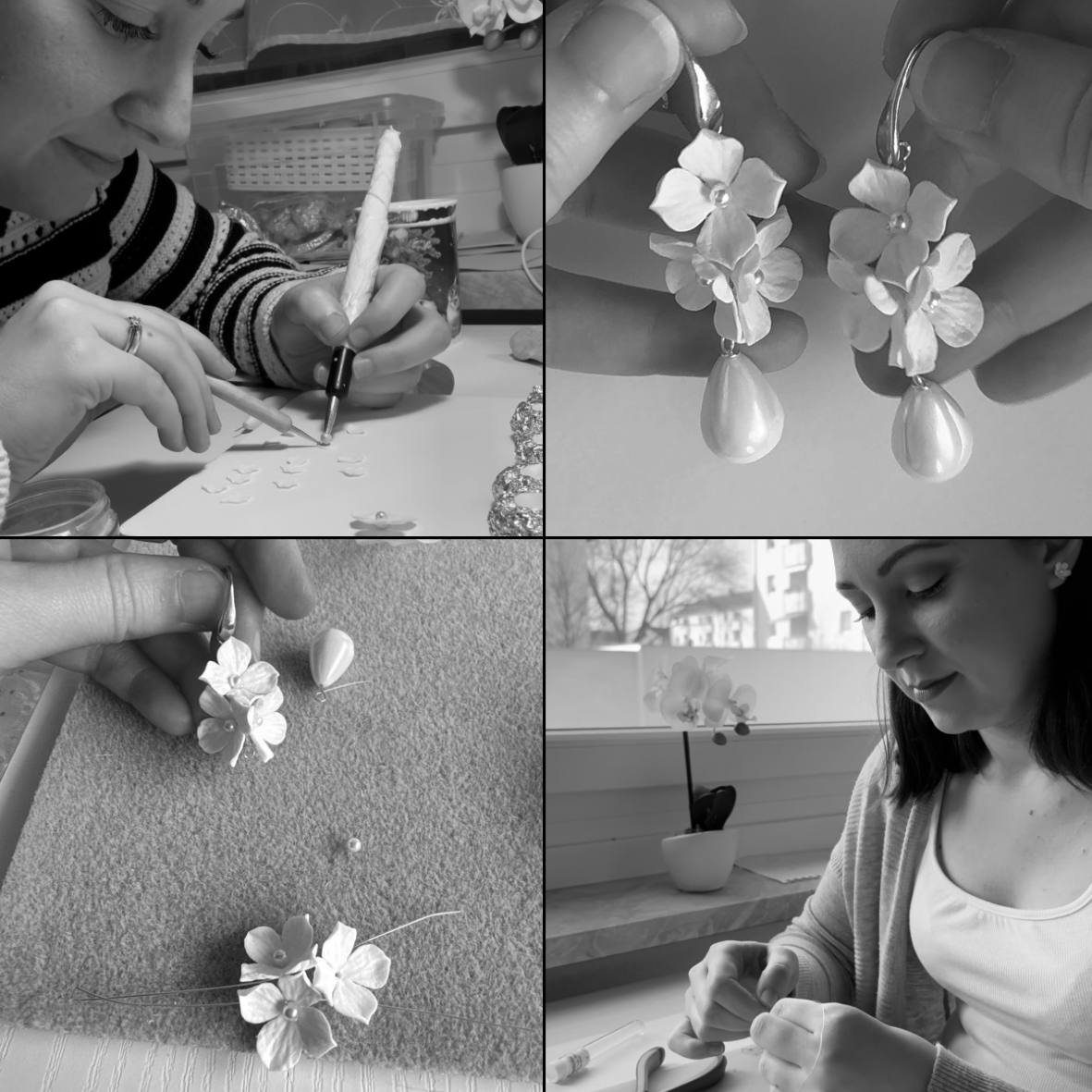 I fiori sono realizzati artigianalmente, i petali vengono modellati a mano uno per uno, utilizzando un'argilla polimerica, che necessita di cottura in forno per indurirsi.